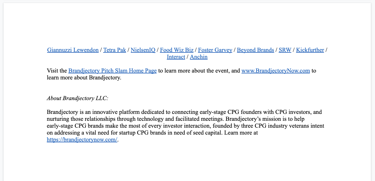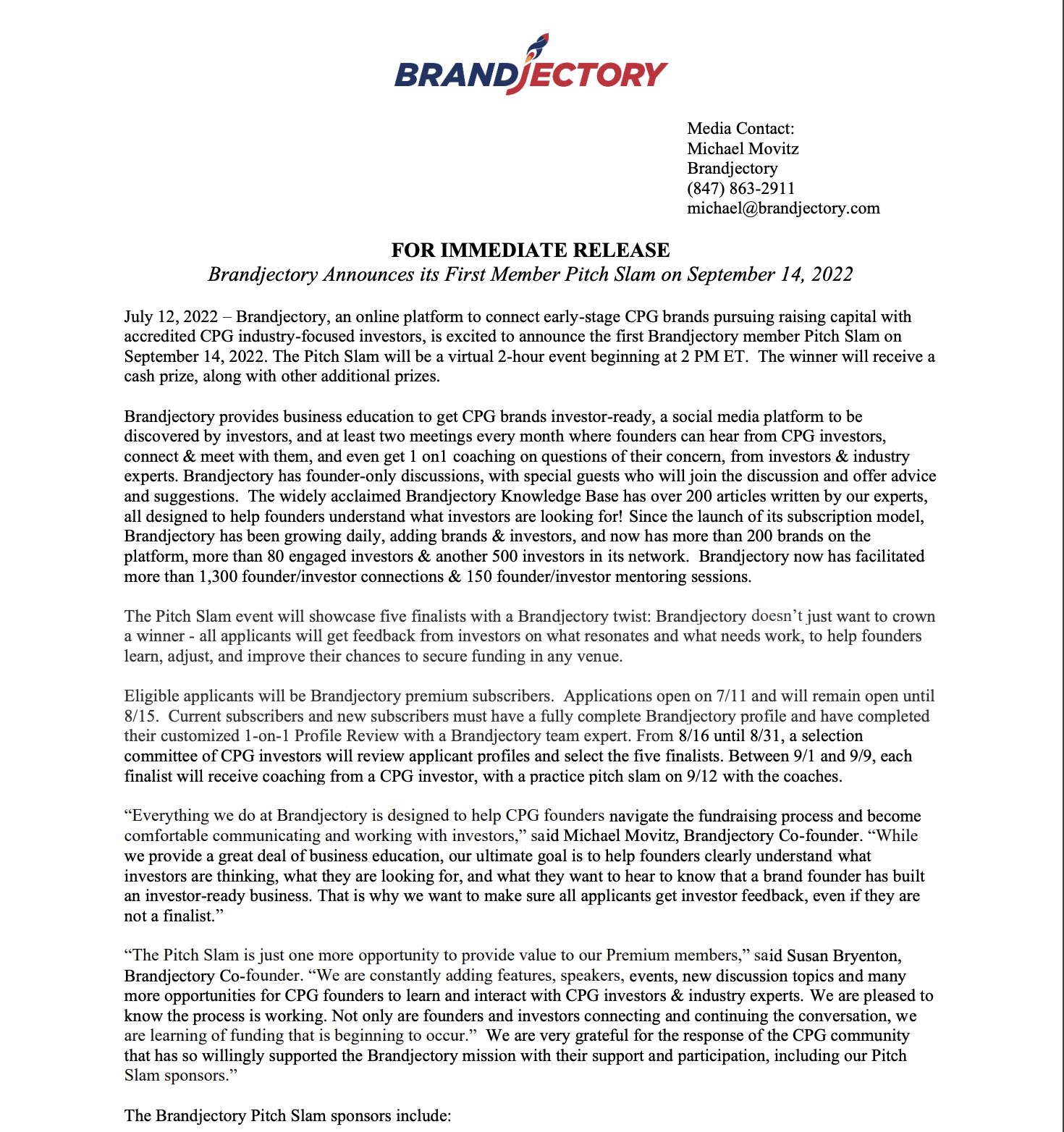 2022 Pitch Slam Announcement Press Release